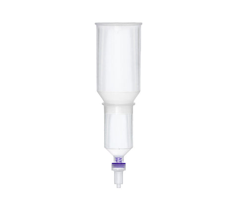 Available as a refill for the ZymoPURE Plasmid Maxiprep Kit. The versatile Zymo-Spin V-P with 15 ml conical and 50 ml reservoirs can be used in centrifuges or on-vacuum manifolds for the purification of plasmid DNA. The Zymo-Spin V-P features durable polypropylene construction and a unique silica-based matrix that allows for purification of up to 1.2 mg of plasmid DNA in ≥ 200 µl eluate when used in combination with ZymoPURE Plasmid Prep buffers. Capacity with reservoir assembly is 65 ml.